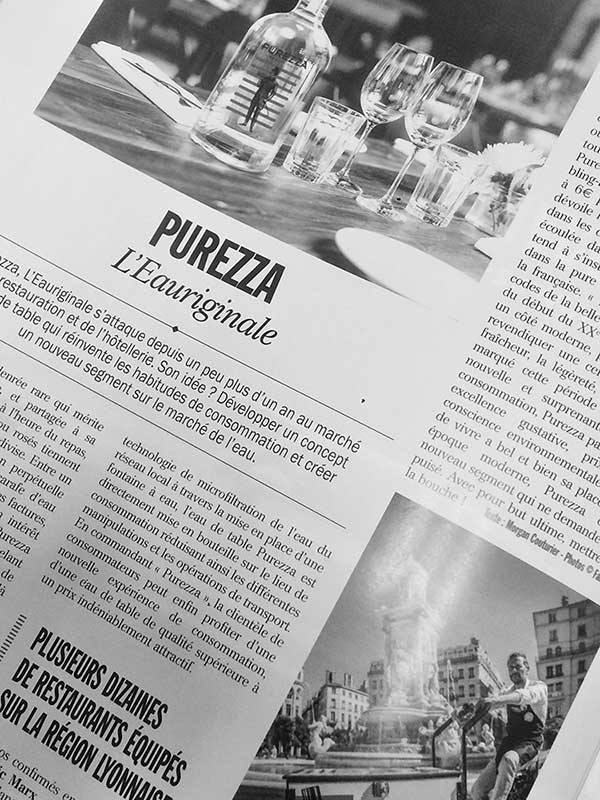 Le tout, dans des proportions très abordables, Purezza voulant éviter de verser dans le bling-bling. « Le coût journalier est inférieur à 6€ pour les professionnels du CHR », dévoile le directeur marketing. Si bien que dans les cuisines lyonnaises, l’eau Purezza, écoulée dans sa forme plate ou gazeuse tend à s’installer à la table des convives, dans la pure tradition de l’art de vivre à la française. « Nous voulons renvoyer aux codes de la belle époque, ce côté rétro chics du début du XXe siècle tout en apportant un côté moderne » poursuit-il. L’idée est de revendiquer une certaine filiation avec la fraîcheur, la légèreté, l’épicurisme qui auront marqué cette période dorée. Avec cette nouvelle et surprenante expérience de consommation, Purezza parvient à concilier excellence gustative, prix attractif et conscience environnementale. La douceur de vivre a bel et bien sa place dans notre époque moderne, Purezza creuse un nouveau segment qui ne demande qu’à être puisé. Avec pour but ultime, mettre l’eau à la bouche !
